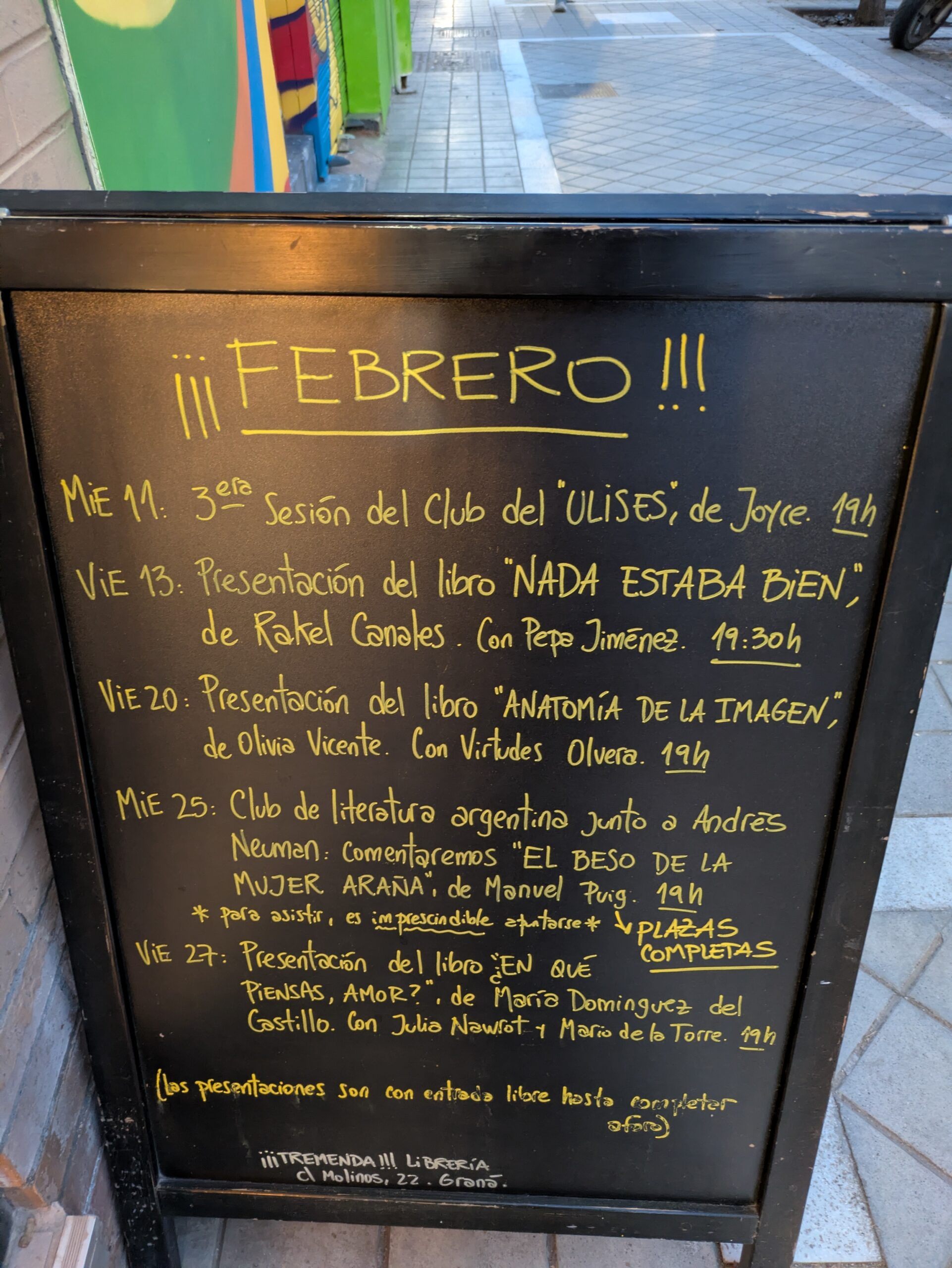 El viernes 20 de febrero pude conocer a mis lectores granadinos de Anatomía de la imagen. El encuentro se produjo en ¡¡¡Tremenda!!! Librería gracias a Virtudes Olvera, cuentista a la que admiro y que tendió el puente. La tarde fue mágica y aún , días después, la llevo conmigo.